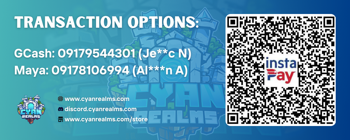 These perks enhance your overall gaming experience and community interaction, providing value beyond just the Minecraft server. For Terms and Conditions, please see: https://www.cyanrealms.com/terms